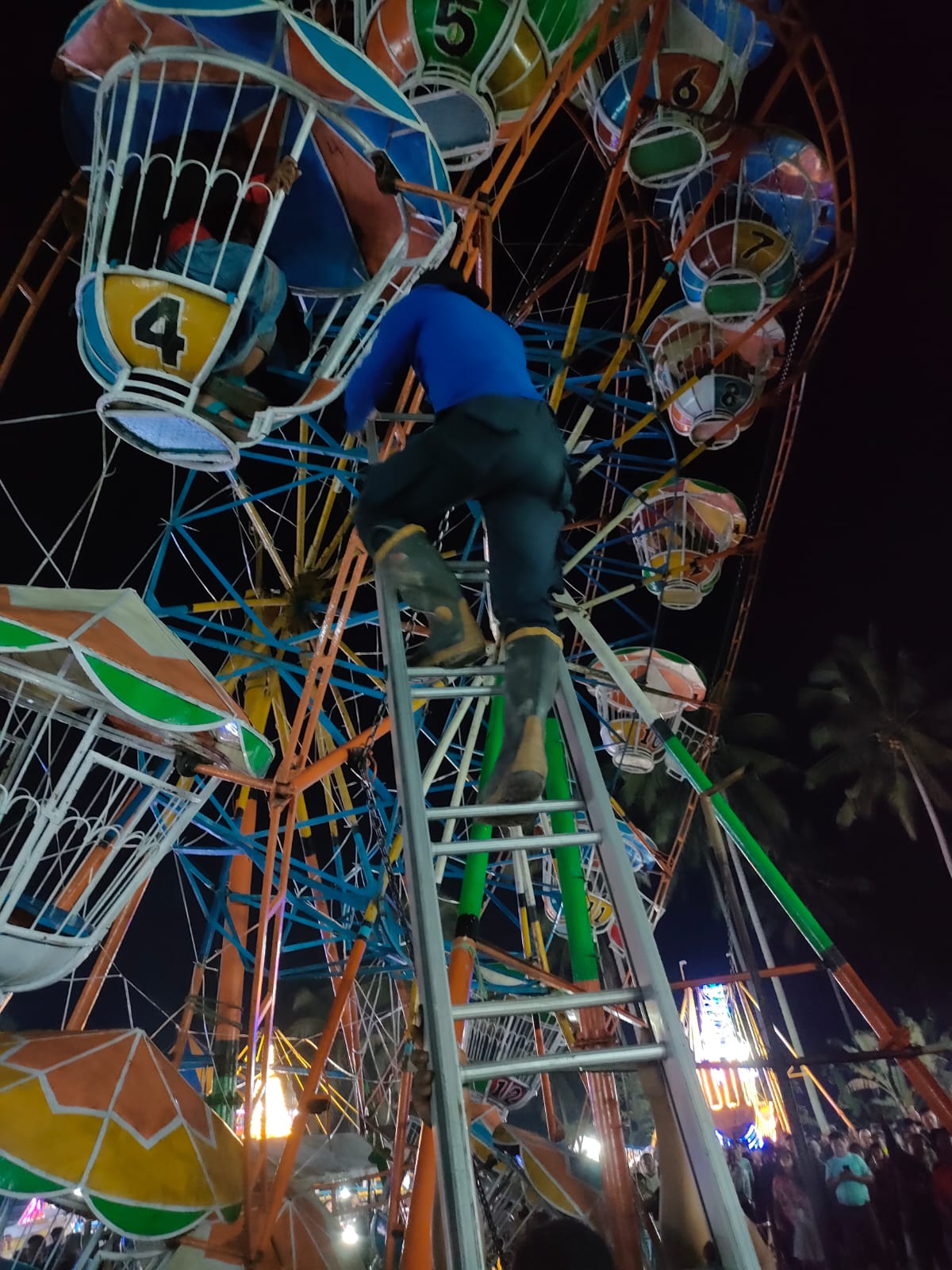 Menurut keterangan Kabid Damkar Budi Kurniawan kepada media via whatsapp mengatakan pihaknya menanggapi permintaan bantuan pengunjung pasar malam bahwa ada terjadi kerusakan pada salah satu wahana dan mengakibatkan 14 orang pengunjung terjebak, diantaranya beberapa orang anak-anak.