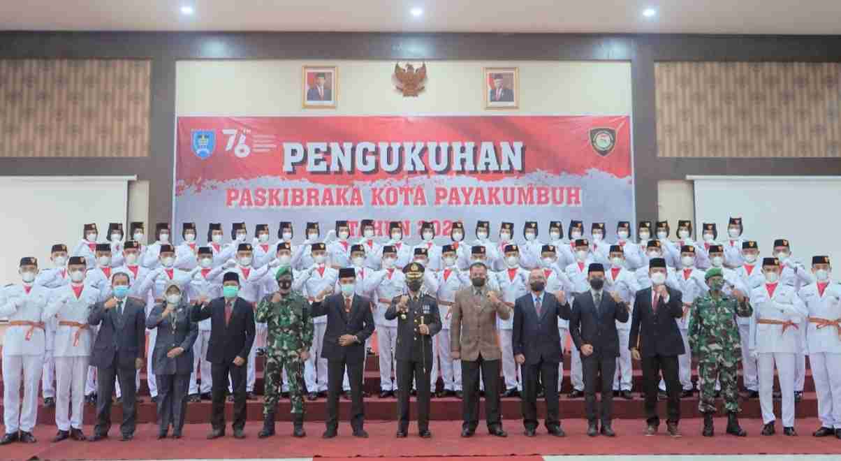 SUMBARTIME.COM-Sebanyak 54 anggota pasukan pengibar bendera (Paskibra) Kota Payakumbuh yang akan mengibarkan sang merah putih pada upacara bendera di halaman balai Kota Payakumbuh 17 Agustus 2021 mendatang dikukuhkan di lantai 3 Balai Kota, Minggu (15/08).