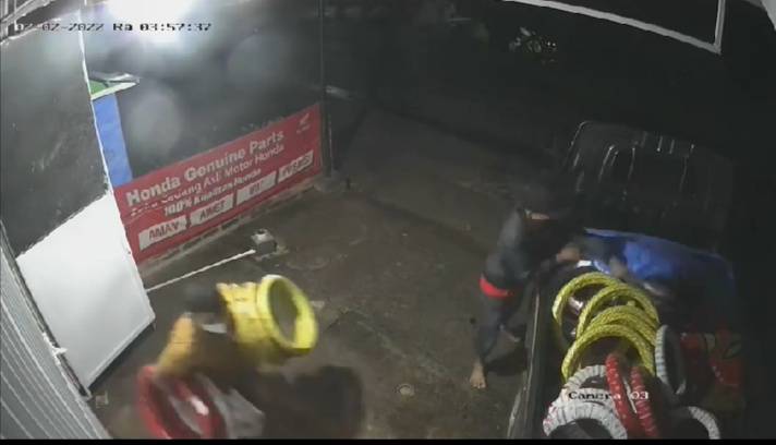 Sementara itu, salah satu dari pelaku yang merupakan sopir dari kendaraan langsung memundurkan mobilnya ke halaman toko dengan kepala kendaraan menghadap ke jalan raya. Adapun masih dari video rekaman CCTV, terlihat 3 orang lainnya langsung beraksi masuk ke dalam toko dan menggondol puluhan ban motor baru serta langsung dinaikan ke bak belakang kendaraan mereka.