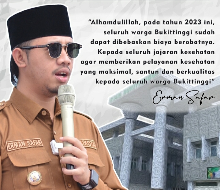 “Alhamdulillah, pada tahun 2023 ini, seluruh waraga Bukittinggi sudah dapat dibebaskan biaya berobatnya. Namun demikian, kita berharap agar warga tetap dapat menjaga kesehatannya.dengan menerapkan pola hidup sehat,” ungkap Erman Safar
