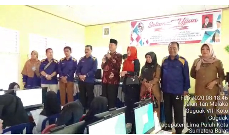 SUMBARTIME.COM-Bupati Lima Puluh Kota Irfendi Arbi tinjau langsung pelaksanaan Tes Sekeksi Kemampuan Dasar (SKD) hari pertama Calon Pegawai Negeri Sipil (CPNS) di SMPN 1 Kecamatan Guguak Kabupaten Lima Puluh Kota Senin (4/2).