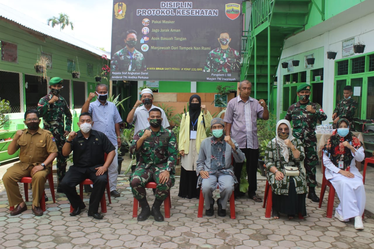 “Kegiatan ini bertujuan untuk mendukung kebijakan Pemerintah dalam rangka mewujudkan masyarakat produktif dan aman terhadap Covid 19, “terang Danyonif 131/Brs.