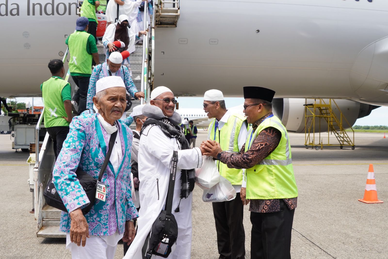 Kepala UPT Asrama Haji Kantor Wilayah Kementerian Agama Afrizen selaku ketua panitia kepulangan jemaah haji mengucapkan sukur atas kepulangan jemaah haji Kloter V embarkasi Padang dapat kembali ke Minangkabwu. Afrizen menjelaskan, Kloter V terdiri dari 392 Jemaah, namun yang dapat kembali 391 orang. “Satu orang jemaah asal Limapuluh Kota belum dapat kembali ke Tanah air atas nama Harisun usia 65 tahun dikarenakan sakit dan saat ini dirawat di RS Al-Madinah,” terangnya. (ST)
