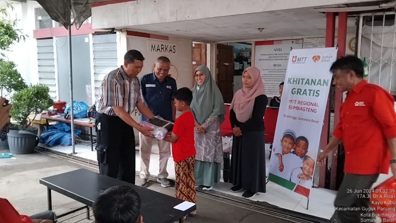 Bukittinggi – Markas Palang Merah Indonesia (PMI) Kota Bukittinggi menggelar Khitanan Gratis di masa libur sekolah, Rabu (26/6/2024). Kegiatan diikuti oleh belasan anak-anak yang antusias untuk pelaksanaan khitanan tersebut.