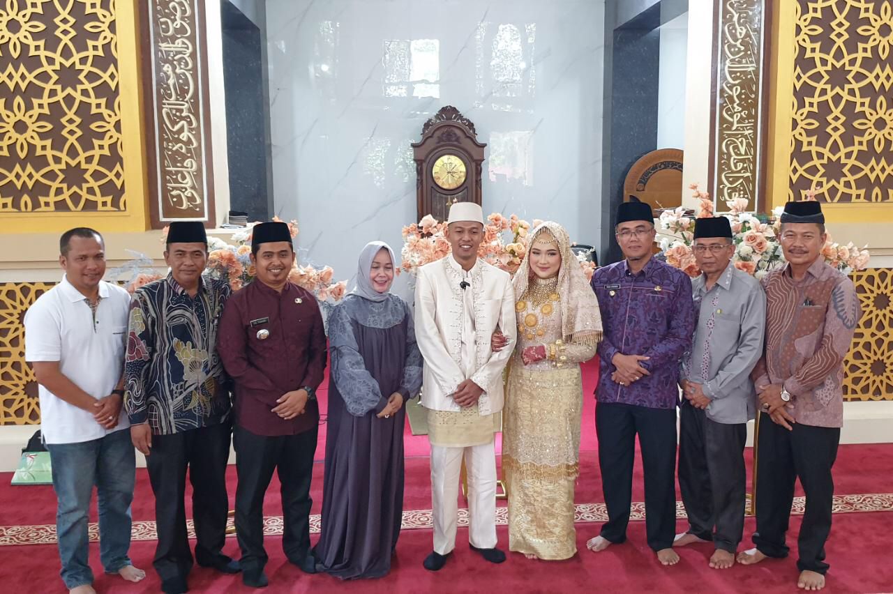 Kebahagiaan keduanya semakin sempurna ketika Pj. Wali Kota Payakumbuh Rida Ananda bertindak sebagai saksi saat prosesi pernikahannya.