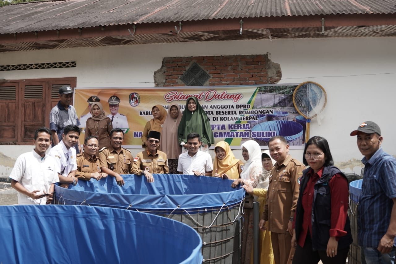 SUMBARTIME.COM, Limapuluh Kota, Diskominfo — Kabupaten Lima Puluh Kota selaku sentra perikanan darat di Sumatera Barat terus memacu peningkatan produksi ikan air tawar. Sebagai upaya peningkatan produksi perikanan, inovasi budidaya ikan tidak hanya di kolam, sungai, maupun bendungan tetapi juga diterapkan di lahan terpal maupun budidaya dalam ember. Teranyar, Dinas Perikanan menebar 6046 benih ikan lele beserta 6 buah kolam bundar, pakan ikan dan alat-alat perikanan kepada Pokdakan Cipta Kerja, Nagari Limbanang. Secara simbolis program fasilitasi benih ikan diberikan Bupati Lima Puluh Kota Safaruddin Dt Bandaro Rajo bersama anggota DPRD Limapuluh Kota Doni Ikhlas didampingi Kepala Dinas Perikanan Lima Puluh Kota Mohammad Siswanto pada Senin, (28/08/2023) berlokasi di kolam Pokdakan Cipta Kerja, Nagari Limbanang, Kecamatan Suliki.