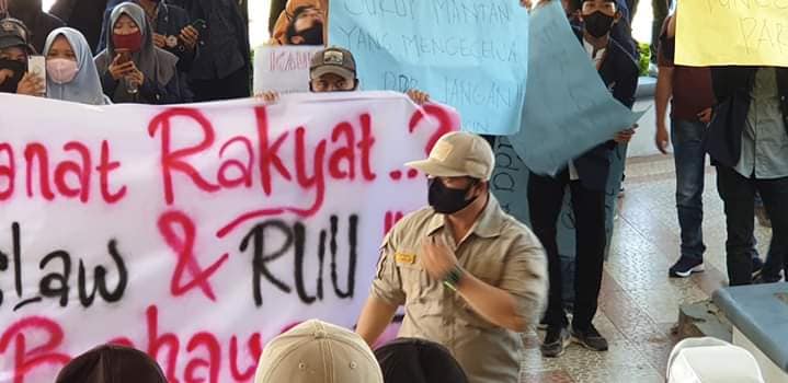 Menurut Mahasiswa dalam orasi yang mereka lakukan di gedung Dewan daerah itu meminta agar para Wakil Rakyat yang terhormat jangan pernah menjadi penghianat bangsa dengan mengesahkan RUU Omnibus Law dan RUU HIP.