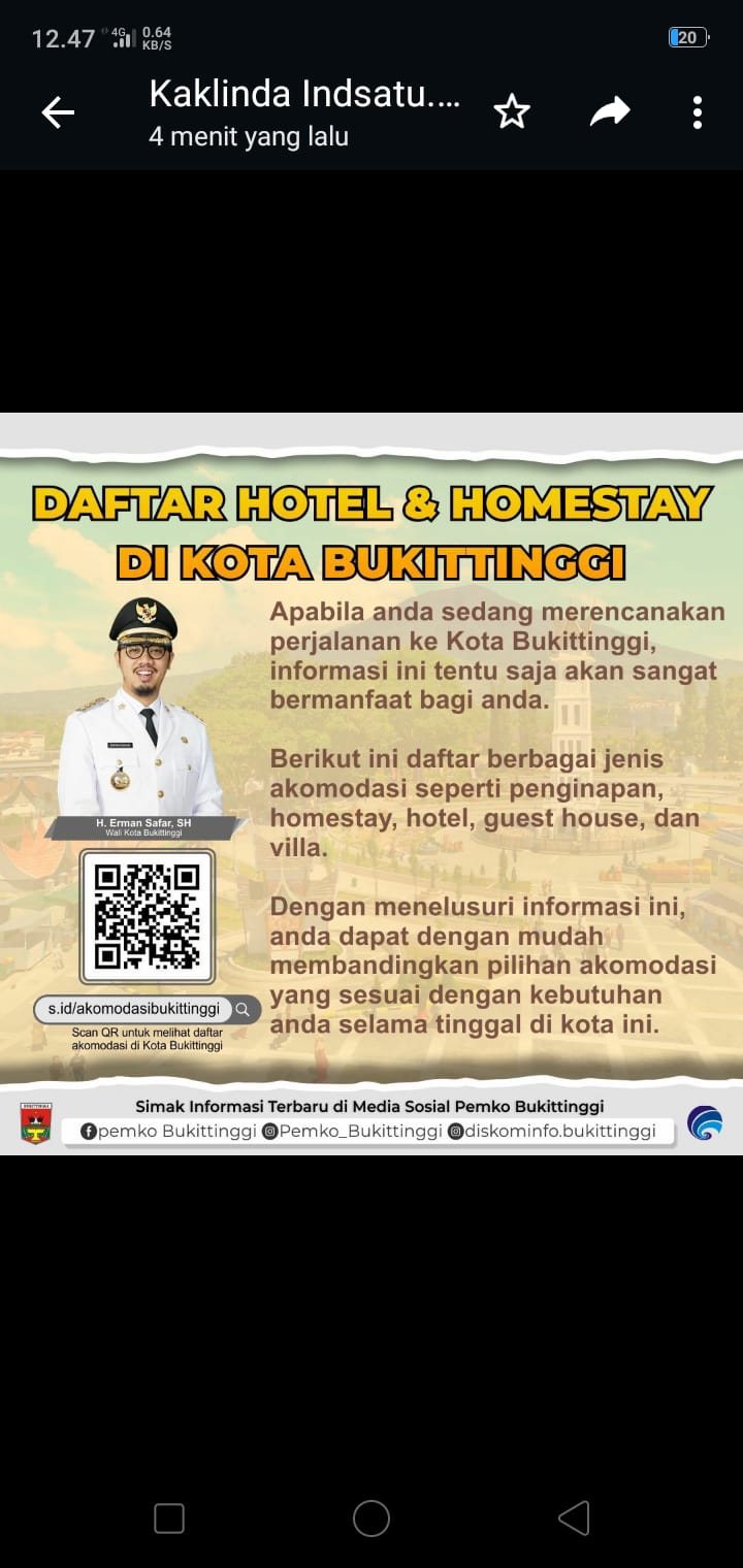“Apabila anda sedang merencanakan perjalanan ke Kota Bukittinggi, informasi ini tentunya sangat bermanfaat bagi anda,” kata Wali Kota Bukittinggi Erman Safar, Selasa (13/6/2023).
