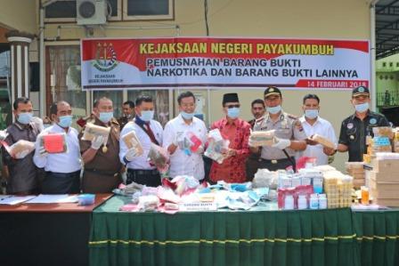 Berdasarkan data yang berhasil dihimpun oleh Bidang Kehumasan Diskominfo Kota Payakumbuh, barang bukti yang dimusnahkan yaitu berjenis Narkotika, Psikotropika dan Kosmetika antara lain adalah, Ganja, Shabu-shabu, Extacy, Happy Five, Hexymer, Writening Cream, Lipstik dan lain-lain yang disita melalui 31 jenis perkara yang berdasarkan Putusan Pengadilan yang telah mempunyai kekuatan hukum tetap.
