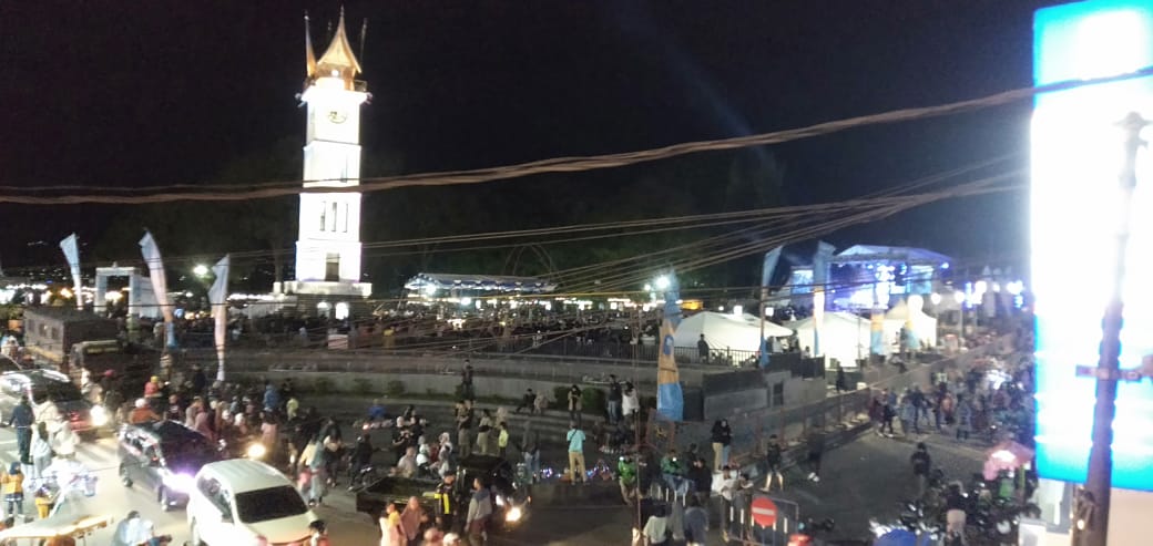 Kota wisata Bukittinggi tak henti-hentinya melaksanakan kegiatan atau event-event, kali ini panggung konser yang digelar di pelataran taman pendestrian jam gadang kota Bukittinggi. membuat taman kota itu penuh sesak.